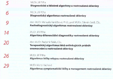 PIŤHA, Jiří a kol. Algoritmy diagnostiky a léčby roztroušené sklerózy. Olomouc: Solen, s.r.o., [2013]. 34 stran. ISBN 978-80-7471-031-5.