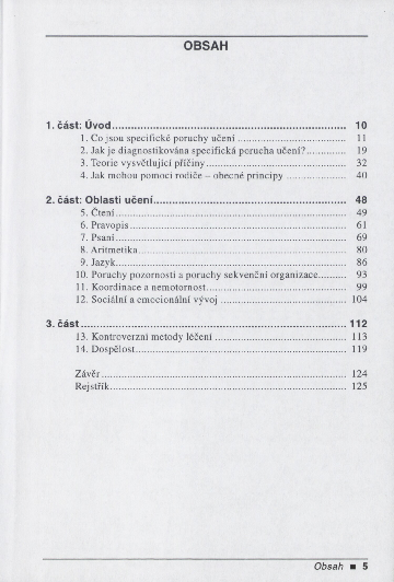 Zcela přepracované a rozšířené vydání. Komplexní pohled především na praxi, ale i nezbytnou teorii nabízí tato kniha, o jejíž úspěšnosti svědčí to, že toto vydání je celkově již desáté. Vývoj v této oblasti u nás i v zahraničí je velmi rychlý jak v důsledku rostoucího napojení ČR na zahraniční organizace, tak vlivem aktivit MŠMT ČR (nové metodické pokyny, pokyny k integraci). Proto autorka celou knihu důkladně přepracovala a doplnila o nové informace a zkušenosti týkající se základních tematických okruhů (terminologie, příčiny a projevy poruch učení, diagnostika a reedukace jednotlivých typů poruch). Nově zahrnula témata, jež jsou zvláště aktuální (žáci s poruchami učení na vyšších stupních školy, výuka cizích jazyků apod.).