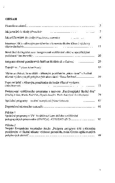Sborníky z konferencí věnovaných problematice sociální integrace a integrované výchovy a vzdělávání tělesně postižených dětí v tělesné výchově.