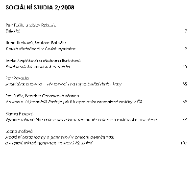 Fučík, Petr, ed. a Rabušic, Ladislav, ed. Partnerství, rodičovství, rodina. Brno: Fakulta sociálních studií Masarykovy univerzity v Brně, 2008. 132 s. Sociální studia; 2/2008.