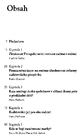 Sborník srovnávacích studií k problematice vztahu prácovního procesu a rodinné péče včetně proměn rodičovské dovolené v České republice v kontextu rodinné politiky Evropské unie.