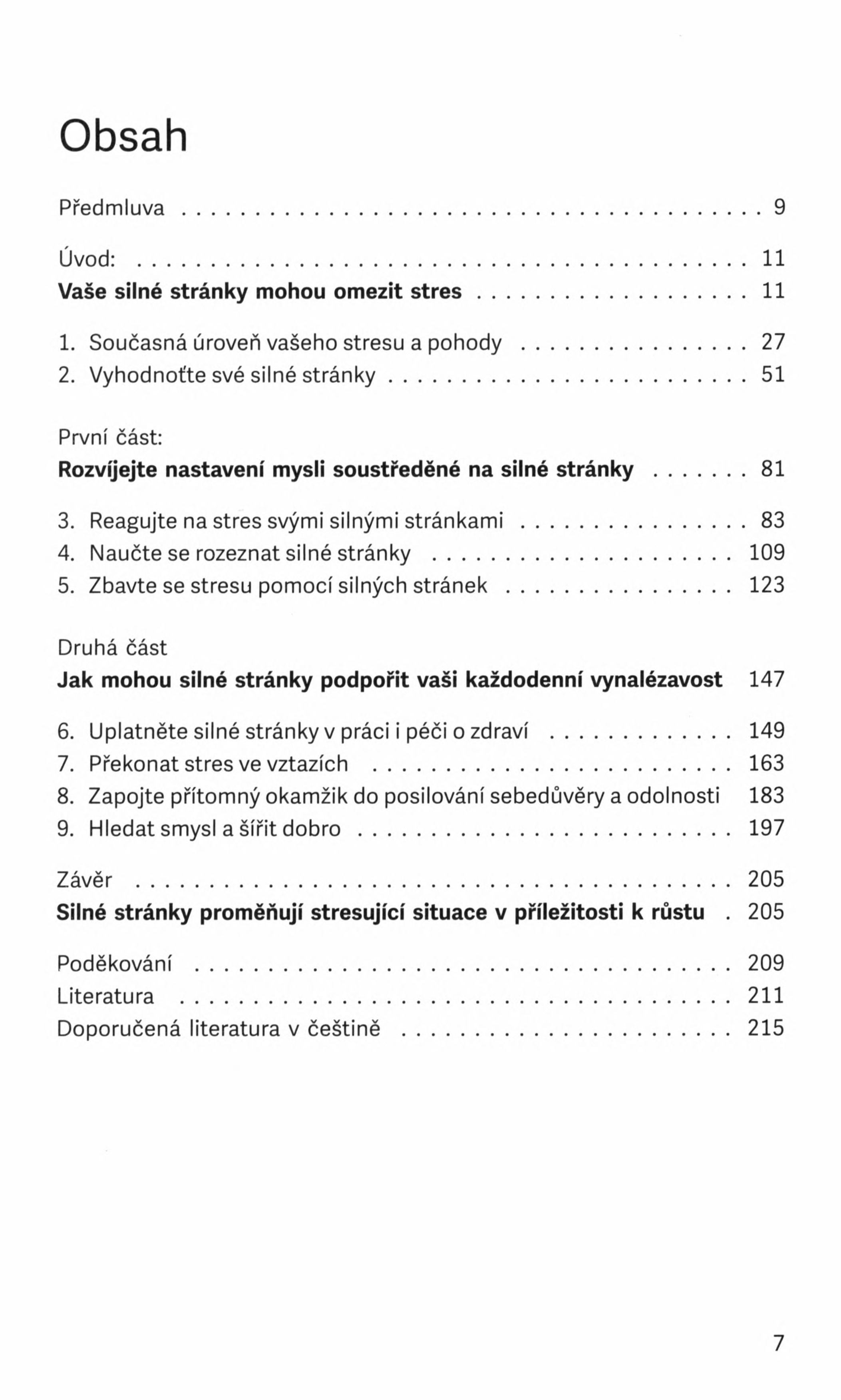 Jak najít klid v každodenním chaosu? Tato kniha se zaměřuje na podporu silných stránek a pomocí různých technik nás provede ke klidnějšímu životu. Chronický stres, který trápí mnohé z nás, je skutečným problémem a může vést k řadě dalších obtíží, tělesných i duševních. Autor čtenářům nabízí ověřené postupy a strategie, které vycházejí z odborných poznatků a pomohou jim identifikovat jejich silné stránky, jako je třeba vytrvalost, sociální inteligence, odvaha, sebekontrola a mnohé další, a navede je k tomu, jak by mohli tyto silné stránky využít v kultivování štěstí, lepších vztahů a dalších důležitých aspektů života.