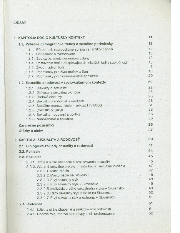 - Sexualita a rodovosť v sociálnych a výchovných súvislostiach