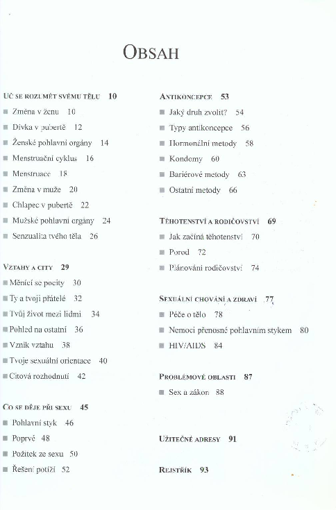 Fenwick, Elizabeth a Walker, Richard. Sexuální výchova: průvodce citovým a tělesným dozráváním. Čes. vyd. 1. Praha: Nakladatelství a vydavatelství Cesty, 1996. 92 s. ISBN 80-7181-022-3.