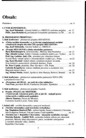Sborník z konference projektu Hefaistos, která byla věnována problematice sociální ekonomiky se zaměřením na sociálně ohrožené skupiny obyvatelska v České republice a Evropě.