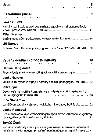 Sborníky ze symposií věnovaných oboru sociální pedagogiky na Pedagogické fakultě Masarykovy univerzity v Brně.