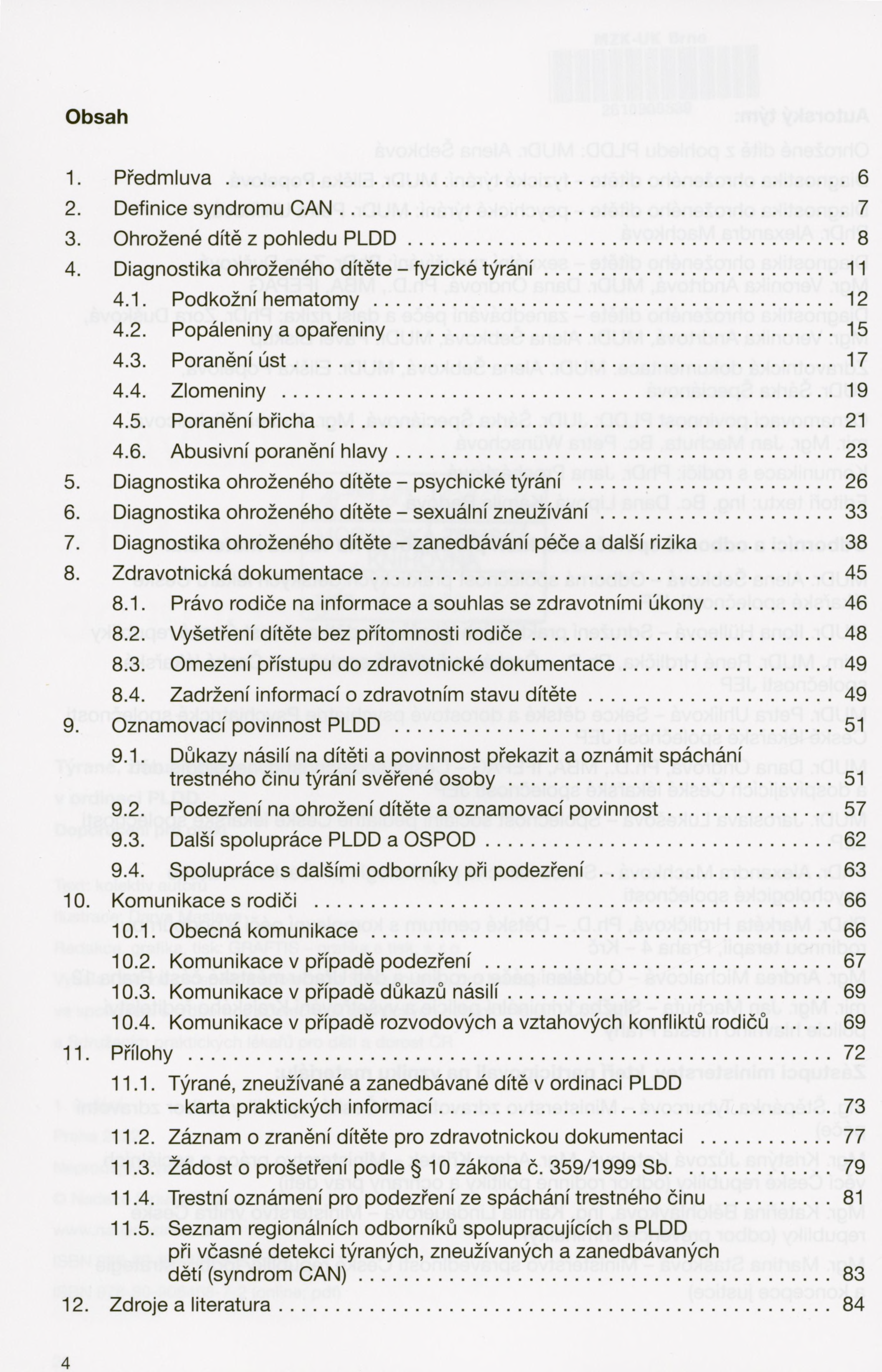 Příručka nabízí praktickou pomoc lékařům, kterým procházejí "rukama" stovky dětí nejrůznějšího věku. Text se snaží být nápomocen ve včasné identifikaci ohroženého dítěte.