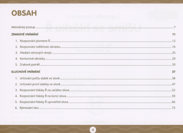 Pracovní logopedický sešit od známé české logopedky Martiny Kolmanové ocení nejen všichni logopedi, ale také rodiče. Kniha přináší více než 100 úkolů zaměřených na hlásku Ř a je určena dětem, které se tuto hlásku učí vyslovovat. Děti díky této publikaci mohou rozvíjet své zrakové vnímání, naučí se určit pozici hlásky Ř ve slově (rozdělování slov na slabiky, vytleskávání, určení slabik ve slově) a procvičí výslovnost ve slovech i větách. Naučí se správně tvořit množné číslo, používat předložky i rody jmen. Autorka nezapomíná ani na rozlišování rýmu, popis obrázku, nadřazené pojmy, logické dvojice apod.