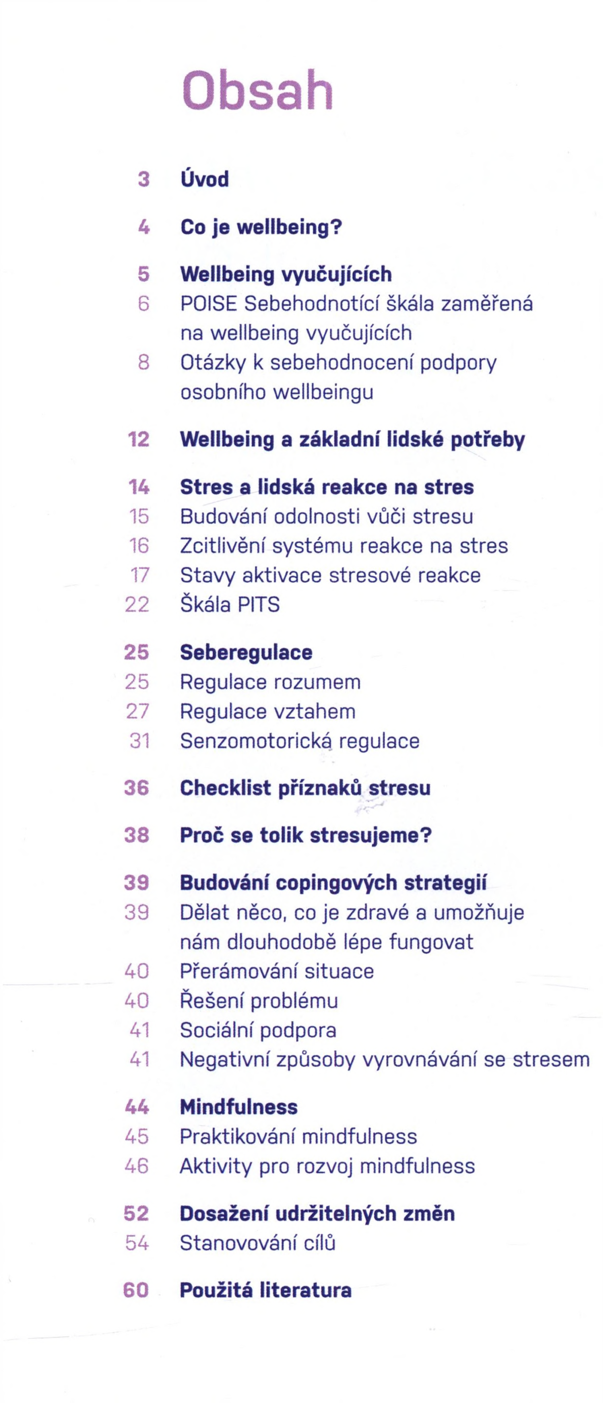 V posledních týdnech směrem k veřejnosti proudí alarmující data o stavu duševního zdraví dětí a studujících na českých školách. Duševní zdraví a wellbeing studujících a vyučujících jsou do značné míry spojité nádoby a bez zaměření se na vzdělavatele duševní zdraví dětí příliš nezlepšíme. Série bezprecedentních událostí, které ovlivnily v minulých letech celou společnost, má nepopiratelně dopad na všechny aktéry a aktérky ve vzdělávání. Tato situace si vyžaduje systémová opatření, multioborovou a meziresortní spolupráci i různými způsoby vyjádřenou podporu od odborné i široké veřejnosti. Učitelky a učitelé jsou v první řadě také lidé. Proto Partnerství pro vzdělávání 2030+, z. ú., přichází s publikací určenou pro učitele a učitelky zaměřenou na jejich osobní wellbeing.