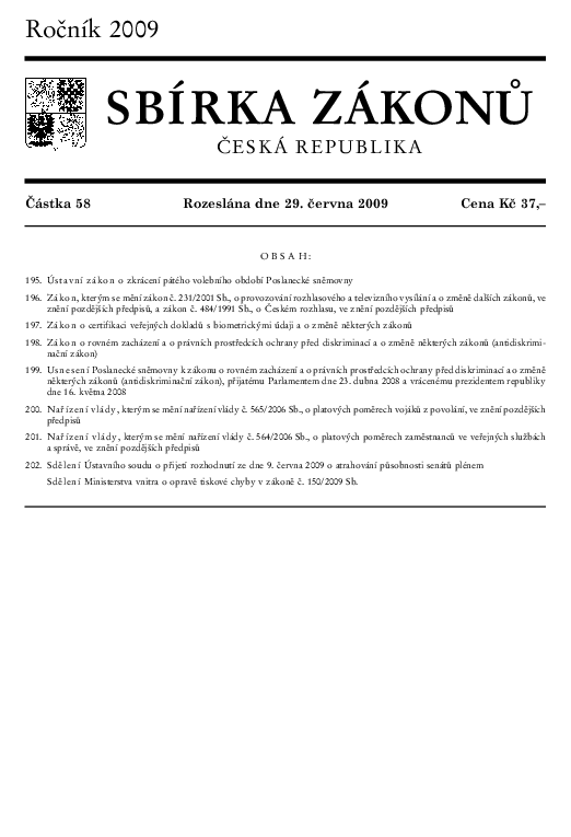 Zákon č. 198/2009 Sb., o rovném zacházení a o právních prostředcích ochrany před diskriminací
