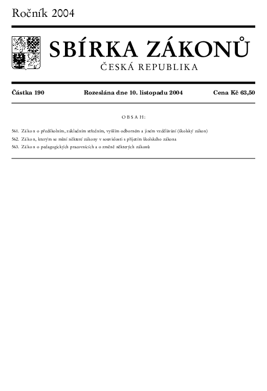 - Zákon č. 563/2004 Sb., o pedagogických pracovnících a o změně některých zákonů