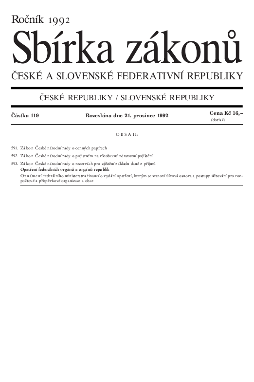- Zákon č. 592/1992 Sb., o pojistném na všeobecné zdravotní pojištění