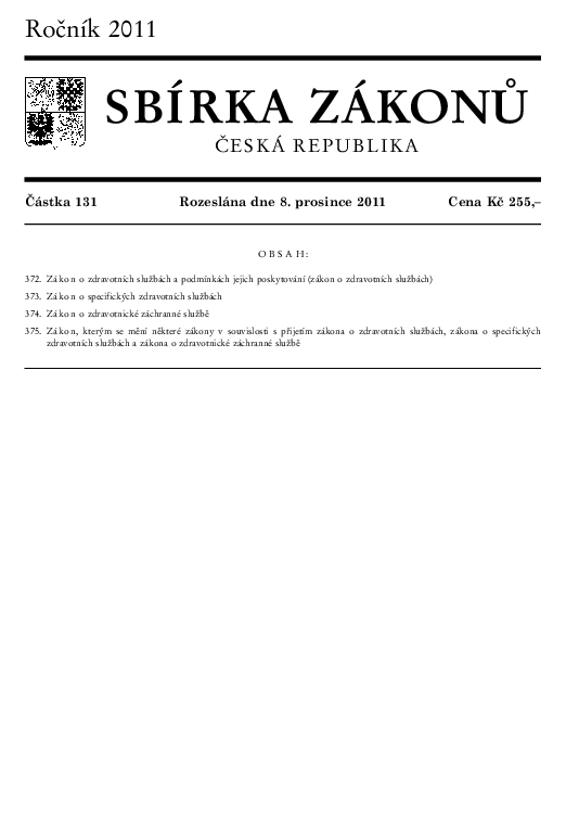 Zákon č. 372/2011 Sb., o zdravotních službách a podmínkách jejich poskytování (zákon o zdravotních službách)